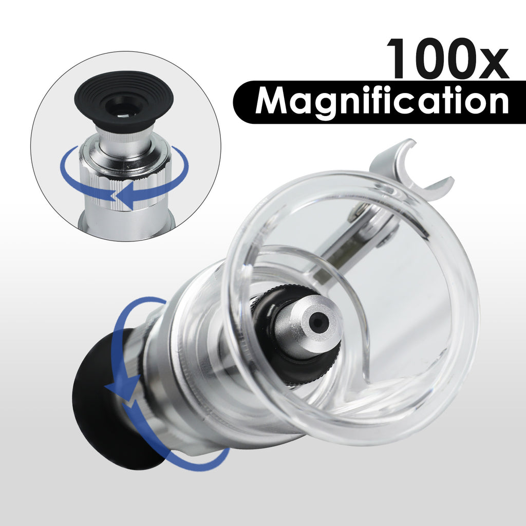 MSC-454 Magnification Microscope 100X LED Lightning Scale Loupe Compact Portable High Magnifying Glass Geology Metallurgy Research