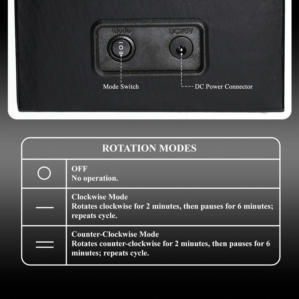 • Rotation Modes: Clockwise, Counter-Clockwise, OFF